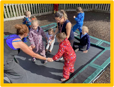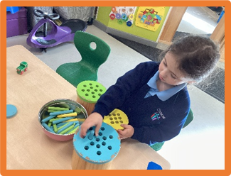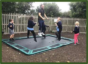We are lucky enough in school to have some great indoor and outdoor spaces, with equipment for our children to explore daily. We have a movement room for individual or small group sessions; we have weekly PE sessions with lots of different equipment to support our gross motor skills and lots of opportunities to support our fine motor skills. Our outdoor space has different types of playground equipment, including a sand pit and large trampoline. PD is a large part of our day; we keep active ensuring all of the equipment is accessible and meets the needs of all of our children.
