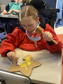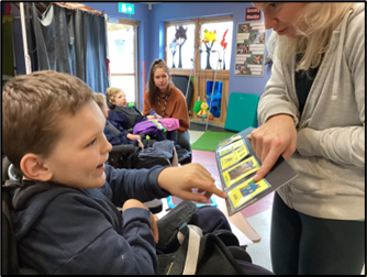 Some of our children with specific needs are able to share specially adapted materials such as the Living Paintings books, Xychem tactile pictures or tactile character audial stories, specifically designed to support children with visual impairments. Making stories and rhymes accessible and enjoyable to every member of the class is at the heart of our planning every time we choose a text to share.