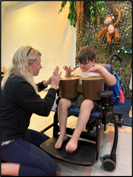 At Curnow Lower school we access a range of learning environments which support and vary our learning opportunities. We have a spacious classroom with a covered balcony, outside play areas including a sandpit, trampoline and plenty of accessible space for everyone. Our sensory room is used for a wide range of sensory, social, physical and cognitive learning activities and the movement room provides a soft play area for structured and free play sessions. We use the hall, classroom and outside space for physical activities both in and out of our postural management equipment. The pupils work in small groups in different learning environments throughout the school day ensuring their learning is stimulating, varied (often messy) and most importantly, active and fun!